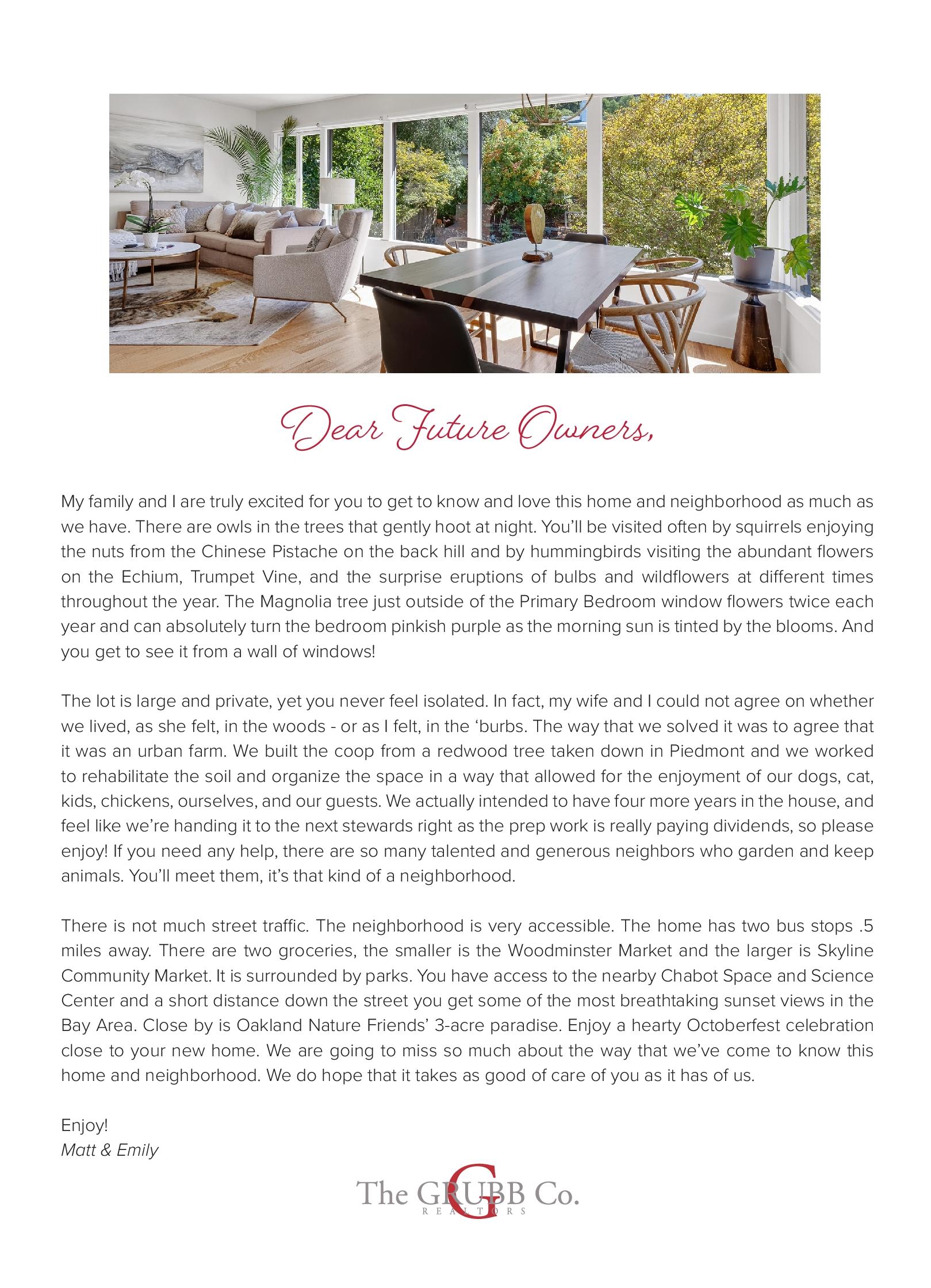 Welcome to the sunny, enchanting pocket of Joaquin Miller, Oakland. Here, beneath a graceful maple tree, awaits an oasis of a home—nestled in nature, a hidden world of its own. A brick path winds through a lush front lawn, the perfect spot for morning coffee. Step inside to discover floor-to-ceiling windows, flooded with natural light, while mature trees frame every view—as if nature itself were the décor. The living room flows effortlessly to the dining area, and an updated polished kitchen. Top-line appliances, custom banquette seating, and live-edge wood shelving, creates a space both functional and beautiful. Open the kitchen’s Dutch door to a small deck—indoor-outdoor living at its finest. Additionally, two spacious bedrooms and a chic updated bathroom await. Downstairs, endless options available for the vast bonus room—customize entirely to fit your life. A garden-view bedroom with office or vanity room, laundry, and a huge storage room will delight. Outside, the backyard blooms with magic—a large patio for al fresco dining, fruit trees, exquisite plantings, an herb garden, and even a handcrafted chicken palace. Birdsong and calm surround you. With an oversized two-car garage and dual EV chargers, this home has it all. Your own retreat awaits- welcome your heart home!